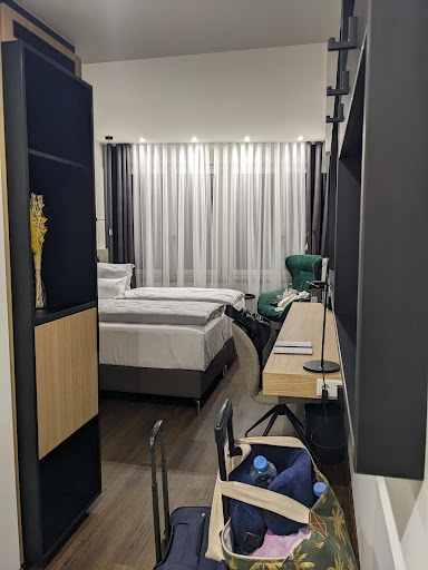 Room: Great. Was big enough for us as a couple. Bed was firm, doona was fluffy and pillows were comfy. The electronic blackout blinds were amazing, it was pitch black, best sleep I got on my entire trip in Germany, maybe even all of Europe. Massive TV which we didn't get a chance to use as we were busy being tourists. Bathroom was great, the water temp was stable, pressure was amazing (don't think it could be adjusted though, just on/off) and the rainfall showerhead was actually big enough to take a proper shower.