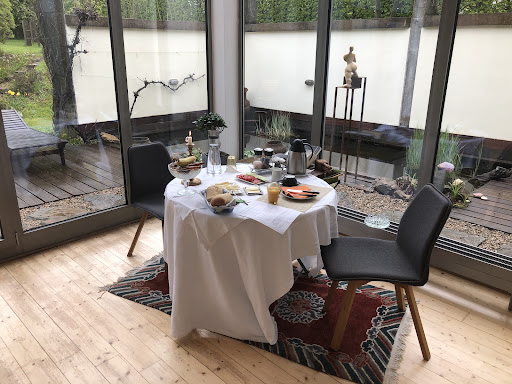 Read moreBei der äusserst netten, offenen und fröhlichen Begrüßung durch Kajo fühlt man sich gleich willkommen und wie zu Hause.|Ein wirklich tolles Haus auf schönem großem Grundstück.|Der separate Gästebereich bietet alles, was man braucht.|Gemütliche, moderne und geschmackvolle Einrichtung und ein tolles Bett.|Diverse Kunstobjekte in Haus und Garten runden das Gesamtbild ab.|Das tolle Frühstück ist in Qualität und Quantität etwas besonderes.|Und wenn man dann mit Kajo ins Gespräch kommt, kann es schon etwas länger dauern und man bedauert, nur eine Übernachtung da gewesen zu sein.|Wir kommen ganz...
