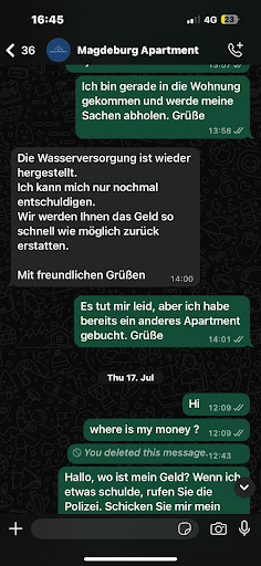 Water main broke , was promised will get money back , so i book other apartment , one month pass still no money , employee convincing me that was payed...