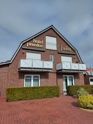 Die Unterkunft war wirklich toll, ein super freundlicher Service. Wir konnten uns aussuchen, ob wir oben (mit Balkon) oder unten wohnen möchten und haben uns dann für ein Zimmer im Erdgeschoss mit kleiner Terrasse, Markise und Außenrollo's entschieden. Die Betten waren sehr bequem und groß (Doppelbett mit zwei Matratzen). Ein großer Flachbildschirm hing gegenüber vom Bett an der Wand, zudem gab es einen großen Kleiderschrank mit vielen Fächern, eine Garderobe und ein kleines Sofa und einen Stuhl mit Tisch. Das Bad war klein und zweckmäßig, mit Fenster, die Dusche nicht riesig, aber vollkommen ausreichend plus Spender mit Duschgel. Föhn und schöne große flauschige Handtücher vorhanden. Das einzige, was fehlte, war ein Safe. Wir haben dann immer das Rollo runter gelassen, wenn wir unterwegs waren und Wertsachen halt mitgenommen. Hinten auf dem recht großen Hof stehen einige Parkplätze zur Verfügung. Das Frühstück war erstklassig, am ersten Morgen waren wir ganz allein vor Ort und da wurde ein Tisch für uns gedeckt mit allen möglichen Leckereien, für jeden Geschmack was dabei (bei mehreren Gästen Buffet). Dann wurden wir noch gefragt, ob wir gern Rührei oder Omelette möchten und das wurde entsprechend noch frisch zubereitet. Also es gab wirklich nichts zu meckern. Einzig der Standort Norddeich hat uns nicht so besonders gut gefallen. EINE lange gerade Straße, ca 800m lang, links und rechts ein paar Restaurants und Geschäfte und dann kam auch schon der Deich. Das fanden wir etwas langweilig. Das "Utkiek" ist empfehlenswert, dort gibt's sehr leckere fluffige Waffeln und eine tolle Aussicht auf Watt und/oder Wasser 😉. Ansonsten gibt's nur eine parallele Straße, direkt gegenüber von der Ortstankstelle, die ins Wohngebiet und zum Wellenpark und dem Minigolfplatz führt. Für Familien mit Kindern ist der Ort bestimmt schön und es ist ja sowieso Geschmacksache, aber uns haben die div. "Siele" wesentlich besser gefallen. ZB. Carolinensiel, ein wunderschönes kleines Örtchen mit richtig Flair und niedlichem kleinen Hafen, viele Restaurants und Cafés drumherum, sehr idyllisch. Und auch Neuharlingersiel direkt nebenan ist optisch sehr schön. Am letzten Tag haben wir uns dann noch Greetsiel angesehen, das in der anderen Richtung lag. Auch wunderschön aufgebaut, viele kleine Gässchen und quasi im Rundgang zu begehen, wirklich ein optisches Highlight. Aber immerhin war das alles von Norddeich aus gut mit dem Auto erreichbar und die Restaurants, in denen wir waren, waren auch alle gut. Falls es uns nochmal in die Richtung verschlägt, werden wir eines der Siele als Standort wählen. Wer Norddeich selbst testen möchte, die Pension Julia ist jedenfalls sehr...