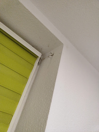 Nicht alle Türen schließen richtig. Die Tapeten kommen teilweise von den Wänden. Sockelleisten fehlen. Fenster sind kaputt. Der Dreck von anderen ist in der Wohnung und auf der Fensterbank noch die Zigarettenstummel.