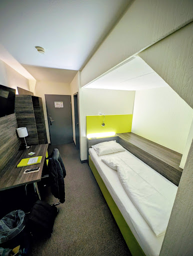 Read moreHier Mal meine ausführliche Meinung zu diesem Hotel, ich möchte anmerken das diese Bewertung weder auf Preis Leistung noch auf Luxus bezogen ist, ich bewerte dieses Hotel nach dem was ich von einem bed and breakfast City Hotel erwarte. Fangen wir direkt mit dem ersten an mit dem man zu tun hat, dem Empfang, freundliches Personal schön eingerichtete Hotel Lobby und man bekommt einen WLAN Code der für 3 geräte gültig ist (das WLAN ist auch Recht gut solange es eben nicht von den gästen überlastet wird aber das ist ja nicht die Schuld des Hotels), in die Zimmer kommt man mit einer Key Card. Kommen wir zu den Zimmern, ich erwarte bei einem Hotel das nur zum Schlafen gedacht ist nicht viel also sowas wie ein Esstisch oder eine Microwelle müssen meiner meinung nach nicht sein, es gibt verschiedene Zimmergrößen ich werde jetzt Mal von dem Zimmer das ich bekommen habe erzählen, man hat ein schön weiches Bett mit angenehmer bettwäsche über den härtegrad des Bettes werde ich nicht urteilen das ist Geschmackssache, es gibt einen Schreibtisch einen Fernseher und einen angenehm großen Schrank, der Zustand des Zimmers war sehr gut der Teppich hatte weder Flecken noch eingebrannte oder verklebte stellen, es roch neutral und alles war schön sauber, das Bad war auch gut gereinigt und hatte auch keinen seltsamen Geruch oder ähnliches, kommen wir zu dem einzigen das ich am Zimmer zu bemängeln habe: die Dusche, an sich eine ganz gute dusche allerdings werden diese scheinbar zu wenig geschrubbt da sich ein wenig schimmel in den ecken und Kanten angesammelt hat, es war keine riesen Menge aber bemerkbar und nicht so schön, deshalb der Sternabzug beim Zimmer, etwas positives, ich hatte zuerst nur heißes Wasser auf meinem Zimmer, als ich bescheid gesagt habe wurde sich sofort darum gekümmert, super Service. Morgens kann man in einer angenehmen Atmosphäre frühstücken, es gibt ein kleines Buffet mit frischen brötchen und sogar richtiger Nutella für oben drauf haha, es gibt auch eine Warmhalteplatte mit rührei, hartgekochten Eiern und manchmal auf würstchen oder ähnlichem, dazu säfte oder Kaffe aus einem von zwei Vollautomaten. Die Lage ist etwas laut deshalb hier ein Sterne Abzug aber keine sorge die Zimmer sind gut isoliert.