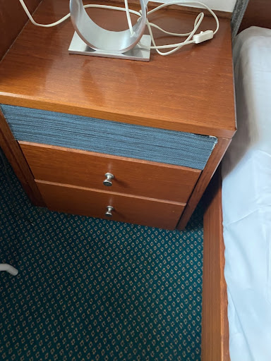 The hotel may be located in an unusual location with supermarkets and hardware stores next to it, but seeing as we were only using the hotel as a base room whilst at a trade convention it worked very well. About a 10 minute drive back into the city centre.||The room we had was very well appointed, two single beds in one room and then a large pull out comfortable sofa bed in the lounge/kitchen/work area.||The decor in our room is certainly 'not modern', would probably put it as mid 90's perhaps, however, it is of a very high quality and you can imagine that when new was very stylish. The bathroom was very large, featuring a bidet as well as a large whirlpool bath and shower.||The kitchenette area had a mini-bar style fridge, though items are purchased at machines in reception rather than having the mini-bar stocked.||There was also a 2 ring hob available.||There was a dvd player and old style CRT TV, though we were not there to watch tv so never tried it.||Also in the "lounge" area of the room was a large fixed table/workstation desk with chairs to allow a comfortable working environment.||It's not a romantic hotel, but for business use it's certainly cheaper than the city centre hotels during convention weeks and as we had a hire car anyway then the travel to'n'fro was not a problem.||There was free wifi available and you obtained a code from reception each morning. There is adequate parking and the hotel is in a quiet area so...