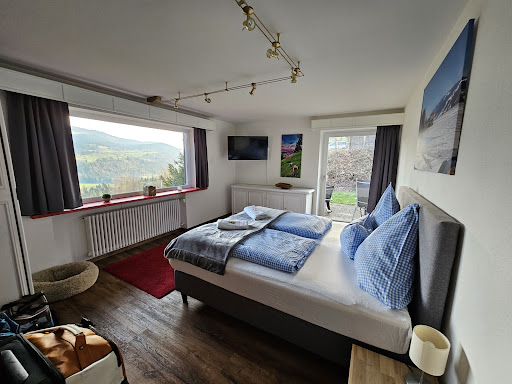 Read moreHier stimmt so ziemlich alles für einen entspannten Urlaub in einer Ferienwohnung: -- Zugang mit elektronischen Schlüsselkarten statt sperriger Schlüssel -- ein großer Kühlschrank voller Getränke und Snacks im Keller zur Selbstbedienung (vom Wasser über Limo, Bier und Piccolöchen, von Schoki bis Erdnüsse) für jeweils 2 € in die Sparkuh, die auf dem Kühlschrank steht -- auf Wunsch Frühstücksbrötchen-Service -- das höher gelegene Haus bietet herrlichen Blick über Ort und Tal -- Wohnungseinrichtung ist prima, genug Stauraum/Schrankplatz und Bügel, Bäder modern und sauber, ausziehbare Wäscheleinen auf dem Balkon -- die Wohnungsausstattung ist prima, es gibt kostenfreies WLan und sogar ein wohnungseigenes Tablet, Teebeutel und eine Erstausstattung an Kaffeekapseln (mit entsprechender Maschine, die allerdings dringend einen Reinigungsdurchlauf gebraucht hätte), Marmeladen- und Honigportionspäckchen, Ladekabel (allerdings nur Lightning für Apple-Geräte) -- die Betten und Kopfkissen sind klasse, hatte so gut wie keine Rückenschmerzen wie sonst immer in Hotelbetten! -- die Gastgeber sind total nett und hilfsbereit