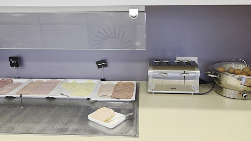 Der Knaller war aber das Frühstück, bei dem mir regelrecht schlecht wurde. Wie ich ja schon erwähnte, glich das ganze Haus einer Sauna. Der Essensbereich machte da keine Ausnahme. Ich ging davon aus (nachdem ich ein so gutes Erlebnis mit dem B&B Hotel in Heidelberg hatte) das Frische und Regionalität ein Kredo für diese Kette sind. Nein. Nachdem ich in Heidelberg von gehobener Klasse sprach ließ hier, Lidl und Aldi grüßen. Als Veganer ist man hier auch nicht gut bedient. Die Auswahl die ich in Heidelberg hatte, hier, keine Spur. Frische? Auf keinen! Das unschlagbare waren aber auch hier wieder die Krabbelviecher. Tod wie auch Lebendig. Vielleicht war das ja mit frische gemeint. Als ich die Ameisenkolonie erblickte, bin ich vom Glauben abgefallen. Das Stärkste war aber das Personal. Eine Angestellte zeigte wohl dem Manager oder Ihrem Vorgesetzten die Ameisen. Der wischte einmal über den Tresen, schaute mal kurz in den Schrank und meinte, "morgen dann mal Ameisenfallen besorgen zu wollen". Dann sah er mich an und wünschte mir guten Appetit. Brech. Die Ameisen waren nicht die einzigen. Den auf dem Buffett lag auch eine Käferleiche, gleich neben dem Käse. Sowie irgendein anderes Vieh im Obstsalat (Später gesellten sich noch Ameisen dazu). Das Obst blieb im warmen Speisesaal. Es wurde nicht in den Küchenbereich gebracht an einem kühleren Ort. So schmecktes es auch. Ich bin nur einmal da gewesen. Das war mein teuerstes Frühstück ever. Die Liste zum abhaken der Gäste lag offen, für alle Sichtbar. Jeder durfte mal einen Blick drauf werfen. Datenschutz ganz groß. Ich war von 8 - 10 Uhr im Frühstücksbereich. In diesen 2 Stunden war nicht ein Mitarbeiter zu sehen, der auch nur einmal nach dem Essen geschaut hätte. Vor allem nachdem bekannt war das da eine Ameiseninvasion stattfand. Unglaublich.