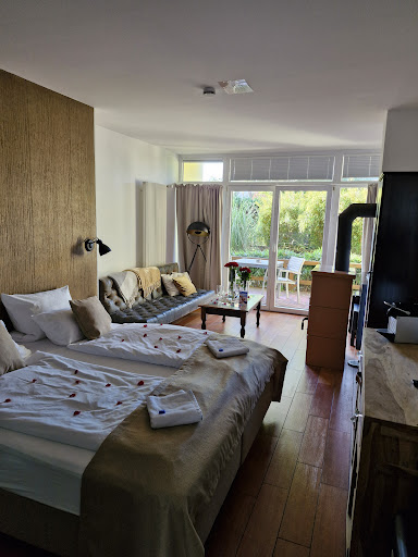 Read moreSuper schönes Hotel. Die Mitarbeiter oder die Besitzer sind super nett und empfangen mich immer herzlich. Wir haben hier schön öfter gehaust und ich habe mehrere Zimmer ausprobieren dürfen. Zimmer 1,2 und 3 sind sehr groß mit einer schönen, großen Dusche. Alle Zimmer sind individuell eingerichtet was Abwechslung reinbringt, aber man fühlt sich egal in welchem Zimmer direkt wohl. Zimmer 6,7 und 8 sind Wellnesszimmer. Was ich garantiert sagen kann, dass ich Zimmer 7 nur empfehlen kann, wenn man im Wasserbett schlafen kann. Ich hab es geliebt. Kleiner Nachteil ist vielleicht, dass man „nur“ ein Jacuzzi im Zimmer hat und keine Dusche, aber das ist auch meckern auf hohen Niveau. Ich komme gut mit dem Jacuzzi aus. In Zimmer 6 ist eine Welnessdusche und in Zimmer 8 ist auch ein Jacuzzi ( sorry, wenn ich die beiden Zimmer verwechselt habe) Zimmer 1-4 haben einen Garten mit schönen Sitzmöglichkeiten. Zimmer 5-8 haben eine kleine Sitzterrasse mit Blick auf einen Teich. Oben im Haus gibt es auch noch Zimmer, aber zu denen kann ich nichts sagen, außer dass die groß sind und einen Balkon haben. Der Preis ist völlig angemessen für die Zimmer und die Lage. 15min zu Fuß und man ist an einem schönen Strand an der Ostsee oder man fährt 3 min mit Auto dorthin, weil da auch ein Parkplatz ist. Das Frühstück im Hotel ist großartig. Es ist nicht so typisch wie im normalen Hotel, da es jeden Tag eine neue...