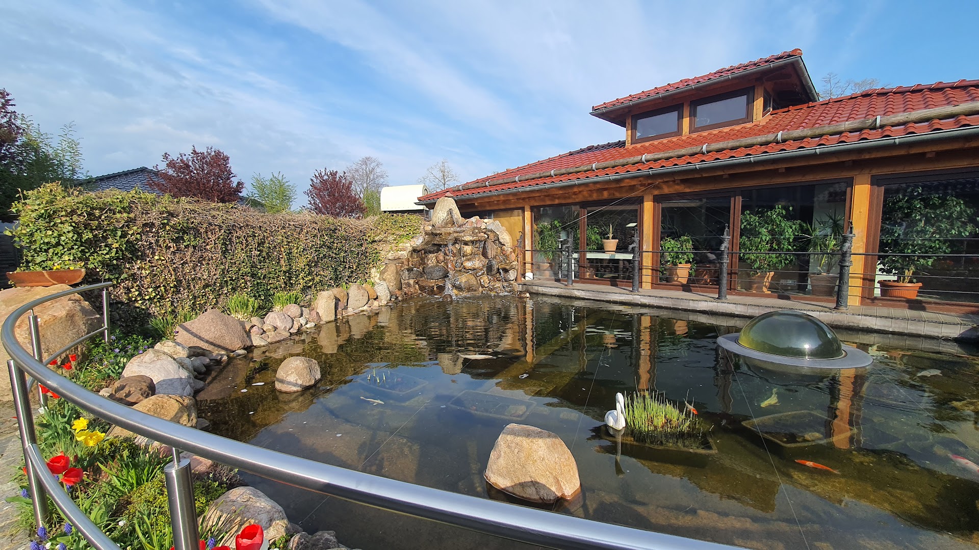 Read moreFina rum, god mat, frukost och perfekt service finns pĂ„ mĂ„nga platser. Ăven hĂ€r. Men det Ă€r inte pĂ„ mĂ„nga platser dĂ€r man bjuds in pĂ„ det lilla extra utöver standard. HĂ€r finns det hjĂ€rtlig och vĂ€lkomnande atmosfĂ€r och genuint omtanke om gĂ€sten som kĂ€nns Ă€kta och inte inlĂ€rt. Man blir inkluderad i lokalsnacket Ă€ven ens tyska Ă€r mer av hellre Ă€n bra karaktĂ€r. Man kan inte kĂ€nna sig mer hemma Ă€n sĂ„ nĂ€r man Ă€r borta. Hoppas att tiden stannar och inget Ă€ndras hĂ€r.... Rummen Ă€r rena och fina, fina badrum. Internet funkar bra. Utanför finns en spĂ€nnande innegĂ„rd med fiskdammar och gĂ„rdspumpar - perfekt för barnen. Hotellet Ă€r lĂ€tt att hitta, ligger nĂ€ra vĂ€gen och trafiken Ă€r mĂ„ttlig. HĂ€r kĂ€nns det...