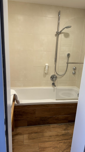 Die Zimmer selbst entsprechen nicht so ganz dem 4 Sterne Standard. Das Doppelzimmer wirkte an manchen Stellen bereits etwas in die Jahre gekommen, die Ausstattung war normaler Standard. Für mich, aber nur persönlich, ein No Go: die Glasschiebetüre zum Bad. Hier will man doch eine gewisse Privatsphäre haben, auch wenn es nur der eigene Partner ist, und nicht beim Toilettengang aufs Doppelbett blicken. Auch die "Geruchs und Geräuschentwicklung" bleibt nicht so ganz im Bad... 😉. Im Einzelzimmer war kein Kühlschrank bzw. Minibar vorhanden.