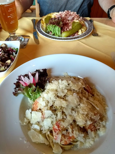 Read moreIch kann nur über die Gastronomie berichten. Die Speisekarte ist umfangreich und die Gaststube hat den Charme einer 80er jahre Gaststube. Ich habe mir Bandnudeln in Pesto Sahnesoße mit Garnelen bestellt. Dazu ein dunkles Bier. Mein Bier kam vom Fass, das meines Mannes aus der Flasche und beide waren leider lauwarm. es gab vorweg ein Gruß aus der Küche, eine schöne Sache und auch nett angerichtet. Mein Essen war optisch auch sehr ansprechend. Leider hielt der Geschmack mit der Optik nicht mit. Gefühl und vom Geschmack her waren in meiner Soße vier Zwiebeln. Zum einen gehören für mich Zwiebeln da gar nicht rein und zum anderen hat die Menge an Zwiebeln alles andere geschmacklich völlig in den Schatten gestellt. Positiv kann ich nur bemerken dass die Bedienung unheimlich freundlich und...