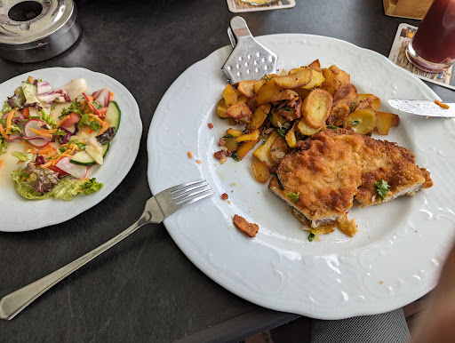 Read moreIm Rahmen unserer Hochzeitsplanung waren wir mit vier Personen Mittags essen. Speisekarte mit sieben Gerichten, darunter vier Schnitzelgerichte, eher spärlich. Schnitzel zudem Tiefkühlware, Salat zusammengewürfelt und geschmackloses Dressing, Bratkartoffel blass, einzig das Spiegelei war in Ordnung. Das alles zu einem überzogenen Preis von über 18 Euro. Absprache für Hochzeit war eher unpersönlich, hektisch und dürftig. Trotzdem wollten wir für einen Vergleich ein Angebot, welches, ohne Überraschung für uns, gegenüber einem vier Sterne Haus wo wir jetzt feiern ebenfalls vollkommen überzogen war. Wozu soll man für eine Feier wo man das ganze Haus für einen ganzen Tag für 50 Personen mit Speisen, Getränke und Zimmer komplett in Anspruch nimmt zusätzlich 1500 Euro an Personalkosten- sowie 1000 Euro Pacht entrichten? Reinster Wucher und...