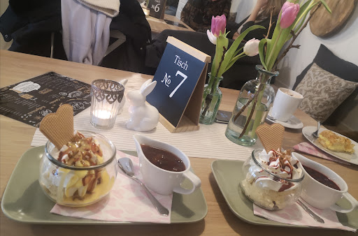 Read moreWir haben per Zufall von dem Café erfahren und es sofort besucht. Es war an einem Donnerstag sehr gut besucht und ein großes Lob für das Ambiente-da hat sich ein guter Innenarchitekt ganz sicher sein Geld zurecht verdient. Wir sind sehr oft im „Norden“ (Nordfriesland, Schleswig-Holstein..)unterwegs…sozusagen im Land des guten Cafés und der besten Torten der Welt ;-) und können somit gut vergleichen. Das Personal ist freundlich und den kleinen Unterschied im Ablauf (tolles Konzept übrigens) hat man schnell kapiert. Nun zum Wichtigsten…die Tortenstücke an der Küste sind natürlich auch teurer geworden, aber 5,20 haben wir noch nicht erlebt und die Tortenstücke sind viel größer, auch bekommt man da komplette Tortenstücke. Sowohl bei meinem Mann als auch mir fehlte ein großes Stück von der Mitte…bei diesem Preis ein no go. Der kleine Kuchenteller mit wirklich wenigen ( in der Summe vllt. gerademal einem Stück entsprechend wenn überhaupt) ist mit 4,20€ einfach unverschämt. Da hilft auch die tolle Etagere nichts. 4,20 € für einen Cappucino musste ich noch nirgends berappen-nicht mal in einer Caferösterei mit super Kaffeebohnen. Die Preise der Eisbecher ab 8,50 sind auch gut dabei, eine günstige Alternative bieten die Eisschalen. Das Eis ist sehr lecker und im Preis noch akzeptabel. 1,50€ ist normal, es geht woanders schon bedeutend teurer. Fazit: ein für Thüringen und Ranis tolles Café, das aufgrund seiner Lage und des Ambientes wohl nie Probleme bei der Auslastung haben wird und leider auch aufgrund mangelnder Konkurrenz preislich schalten und walten kann… Wir werden hin und wieder...