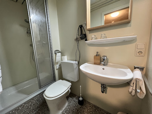 This is a tough review to write, because most aspects of our stay were great, but the one that wasn’t affected our experience pretty negatively.|This was a standard hotel room with 2 double beds and private bath with shower. We were on the 3rd floor (counting European style), 4th floor by US counts.||There was no fridge, but for one night we didn’t miss it.||The location is great, especially if you are arriving by train. It is about 7-10 minutes’ walk from the station and also in the historic center of town, so you are in the UNESCO area and can explore it on foot.||The hotel is a small operation, but friendly. We enjoyed the welcome drink they offered. Their reception desk closes in the evening.||Now for the problematic part: the AC. When we got into the room, it was great. It stayed that way into the evening and when we went to bed. Then I woke up at 12:43 AM feeling really warm. The AC didn’t seem to be running. I tried fiddling with it, but got nowhere. Eventually everybody else woke up hot. DH looked at the AC and thought that maybe it had been centrally turned off and locked: there was a padlock symbol on the digital display. We couldn’t call down to the front desk to ask because they had closed hours earlier. I opened the windows because the air from outside was cooler than in our room. Eventually we fell back asleep, but it definitely tainted our experience.||Because we were there just one night, I didn’t bother to ask if the AC had been shut off. I understand that energy costs are high, but this would have been a really lousy time for an automatic shut-off given the excessive heat warning and the floor we were on. As I walked down to buy breakfast the next morning the temperature difference between our room and street level was noticeable. And if it’s hotel policy, they could inform guests so we know to open the windows at night. Alternatively, maybe the AC had just broken, but it had been working wonderfully just a few hours before.||My recommendation, then, depends on when you would be visiting. If you stay at a cooler time of year, I see nothing wrong with this hotel. But if you are going in summer, especially during a heat wave, I can’t...