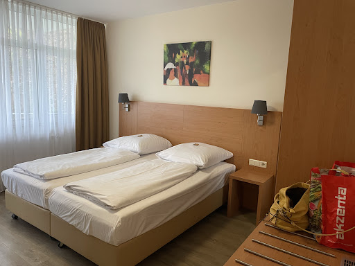 Der Rest, leider alles andere als positiv: Juli 2024) Leider war das Zimmer bei meinem 2. (2023) und 3. Aufenthalt in den letzten Jahren hier nicht sauber (schwarze Haare auf der Bettwäsche (Kissen und Laken), staubige Flächen, Staub in den Ecken auf dem Teppich. Diesmal auch Haare in der Dusche und im Waschbecken, in der Toilette waren noch Überreste vom Vorgänger, der Teppichboden und das Bad waren leider auch nicht sauber. Die Flure auch nicht. Beim ersten Aufenthalt war schon kein Entgegenkommen, Verständnis oder eine Entschuldigung, stattdessen unfreundliche Reaktionen, nicht mal ein Wasser oder ein Getränk aufs Haus. Das Hotel ist ohne Klima (weder in den Zimmern noch in den Seminarräumen, bei der Hitze), wäre Sauberkeit das Mindeste, und auch eine andere bzw. professionellere Reaktion der Geschäftsführung.