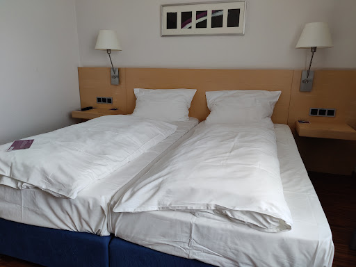 We made a last minute reservation for one night at this hotel because we had to attend a meeting in Rheine that we had not known about a week earlier. We had an excellent experience. The room was small but not tiny and had everything you would need for a short stay. It even had a small fridge with room for your stuff because it was not jammed full of their stuff. The beds were good the towels were fine the staff was pleasant and helpful. There were even a couple outlets that accepted American plugs without an adaptor. I had not come across that before in a European Hotel. And most of all it was quiet. It was in a quiet neighborhood and we had a very quiet room and that's something that we value very highly. There was an elevator and there was limited off street parking that was free. We would definitely stay here again if we ever return to this little town.||One minor negative that might not matter to most of you. The lights in the bathroom came on automatically when your went in. Sometimes that might be convenient. Other times like in the middle of the night you might not want to be subjected to sudden very bright lights beyond your control. But this was a very...