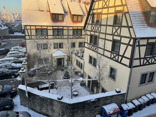 Read moreArrived via train from Wurzburg around 10.45am and was allowed to check in by a kind plump lady, room 206. Avoid this room in the summer as its directly above the night entrance of the hotel. No problem in the winter, lucky us! ||||Room was smaller than it seems (22sqm), twin beds so close to each other, safe, small minibar, fan, TV, bathroom with a tub. When booking, breakfasts was 16.50 euros each, cheaper than 18.50 during check in. We are not breakfasts people, so avoided. ||||Common areas are nice, modern with an elevator. Facade was made to look like half timber but it seems to be purpose built, concrete building. ||||Why we rated it 3 stars was because of a lack of a kettle for the cold winter. They offered a thermos flask instead but its a chore to go down to the Restaurant every-time the thermos is empty! ||||When asked about the bus for Dinkelsbuhl, the same plump lady spent 3-4 mins to check on her computer then told me to check by myself …so much for a 4 stars hotel! We found a 8.29am bus but waited 20 mins in vain! So took a taxi to Dinkelsbuhl for 100 euros instead! See my review for 3 stars Hotel Piazza in Dinkelsbuhl. ||||The greatest asset of this hotel has to be its location, probably the closet hotel within the walls to the train station, 10 mins walk with no luggage. Add 2-3 mins more if with luggage. Overall, our 3 nights at this hotel was fine but we had expected more for the price we paid for a 4...
