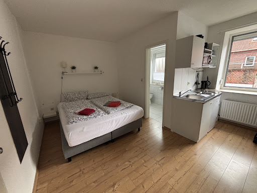 Well what can you say about this place!||Nothing hugely complimentary thats for sure.||||I've stayed here while working on the offshore wind farms by Norddeich, 15km away for 8 weeks this summer and I would have rather have been in jail.||||The water that comes out of the taps has a lovey brown shade to it and a "interesting" earthy taste, ok for showering and washing with but don't make a coffee with it, I bought bottled!||||Rooms are basically furnished cheap bottom range IKEA , fridge, kettle, 2 ring hob, table dining chair and armchair but oh the bed is backachingly soft and underneath is filthy, not been cleaned for a long time.||||Do you like insects? Namely flies and mosquitoes?||These have been a big problem here, so much so you cannot leave windows open at night to ventilate the room or you get eaten alive.||The amount of dead insects and spiders webs in the communal areas is incredible!||||This place is also full of contractors, as it is cheap accommodation for companies, guys who get up very early for work, we're up at 03.30 😢 so if you're here for a relaxing stay bring ear plugs!||||Bathrooms are pretty naff shower curtains don't prevent the water flooding the bathroom floor because they don't actually reach the shower tray as the curtain rail is set too high.||Kitchen cupboard doors keep falling off and the hot water supply is either arctic blast or so Fukushima nuclear you jump out of the shower like a scalded cat with 3rd degree burns.||||On the plus side the wifi is free and a pretty decent speed and the car park is adequate but gets very full.||||As for security there isn't any the place is wide open with no reception staff just a phone number to get your room key code, which you type in on the pad, see photos. ||We fortunately have not had any problems with any break ins but we have noticed since staying here multiple times over the summer the key codes haven't been changed!||||All in all this is adequate for workers but if you want a romantic getaway for two that'll ultimately lead to divorce this is the...