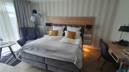 Read moreMein Mann und ich waren Anfang September 1 Woche dort. Wir bewohnten ein Zimmer mit Dachterrasse und und Meerblick. Tolle bequeme Betten. Schönes großes Badezimmer mit Regendusche. Die Zimmer 258 bis 260 hatten alle drei eine Dachterrasse. Diese hatte leider keine Abtrennung. Das empfanden wir als störend. Das Hotel liegt in Bensersiel direkt hinter dem Deich. Durch den kleinen Kurpark sind Ort, Hafen und Strand schnell erreicht. Sehr beengte Parkplatzsituation am Hotel. Wir hatten das Meerzeiten Arrangement gebucht. Das Frühstücksbuffet war super. Die Frühstücksdamen alle sehr nett und versprühten gute Laune. In unserem Arrangement war ein exklusives 3 Gang Menü enthalten. Dieses konnten wir auch 2 Abende genießen. Super lecker, kreativ und eine Augenweide. Dann kam jedoch eine Bus Reisegruppe und aus der Traum. Es wurde uns Abends beim Betreten des Restaurants mitgeteilt, dass es den Rest der Woche nur noch Buffet gibt. Leider mussten wir dieses einen Abend mitmachen, da der Service im Restaurant nicht bereit war dieses zu ändern. Für mich würde zum Glück ein vegetarisches Gericht zubereitet. da wir immer erst nach 19 Uhr zum Abendessen gingen ( wir wurden am Anreisetag gefragt ob wir um 17.30 Uhr oder 19 Uhr essen möchten) , musste sich mein Mann leider mit trockenem Lachs und angebackenen Hähnchenschnitzeln zufrieden geben und wenn sich Kondenswasser der Abdeckhauben mit Gemüse und Bratkartoffeln mischt ist der Geschmack auch dahin. Was für ein Absturz. Am nächsten Morgen haben wir uns darüber beim dem netten jungen Mann an der Rezeption beschwert und ab diesem Abend könnten wir a la Carte essen. Top. Vielen lieben Dank. 👍👍👍👍👍👍. Das war wieder super lecker. Toll gebratener Fisch und Fleisch. Der Begrüßungscocktail wurde uns erst am zweiten Abend und auch Nachfrage serviert. Wir wurden nicht gefragt, wie wir es üblicherweise kennen, mit oder ohne Alkohol. Ohne Kommentar wurde uns ein Glas hingestellt. Erst auf Nachfrage hieß es: Fruchtcocktail ohne Alkohol. Er sah toll aus aber geschmacklich nicht unser Fall. Leider war der Service beim Abendessen zum Teil sehr unaufmerksam. Man saß häufig vor leeren Gläsern. Okay. Wir beginnen den Abend gerne mit einem Aperol Spritz und danach setzen wir ihn mit Bier und Wein fort. Dann evtl. Ein schöner Cocktail, einen Absacker und/oder Espresso. Das gehört für uns zum Urlaub dazu. Leider war dieses zum Teil nicht machbar, da sich keine Servicekraft zuständig fühlte. Okay. Dazu muss ich sagen, das der Großteil der Gäste wirklich nur ein Getränk zu sich nahm. Vielleicht war das der Grund. Für uns war es jedoch sehr schade. Zum Abschluss möchte ich mich nochmals bei dem jungen Mann an der Rezeption bedanken. Sie hatten immer ein offenes Ohr und alles möglich gemacht um uns einen angenehmen Urlaub zu...