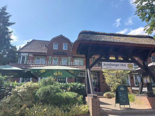 Read moreDer Jesteburger Hof ist wohl ein familiengeführtes Hotel und das merkt man auch am herzlichen Umgang des Personals mit den Gästen. Es ist ein kleines Hotel, sicherlich an einigen Stellen in die Jahre gekommen, aber das ist völlig in Ordnung. Wir waren aufgrund einer Anfrage nach einem ruhigen Zimmer im neueren Anbau untergebracht, hier sind die Zimmer wohl renoviert und im zeitgenössischen modernen einfachen Stil eingerichtet. Die Matratzen waren sehr gut und der Kleiderschrank für unsere Garderobe (wir waren für das Wochenende für ein Mittelalterfestival dort) gross genug. Auch das Frühstücksbuffett war völlig in Ordnung, auch für Vegetarier für mich war genug Auswahl, neben Käse und verschiedenen Marmeladen war aber auch eine gute Auswahl an Wurst für die Fleischesser unter uns, desweiteren Müsli und Joghurt, also völlig ausreichend, soviel hat man zu Hause für gewöhnlich nicht auf dem Frühstückstisch. Dem Hotel ist ein Restaurant angeschlossen, welches gut bürgerliche Küche bietet, über verschiedene Fleischgerichte werden hier auch Fischgerichte angeboten. Für die Vegetarier: Gerichte mit Bratkartoffeln enthalten Speck, besser danach fragen - ich habe es nicht getan, tja...Speck gehört hier in die Bratkartoffeln, wusste ich nicht. Es ist halt auf dem Land, vielleicht hat man hier nicht viele Berührungspunkte mit Vegetariern. Ich will aber nicht meckern, wir waren wirklich sehr zufrieden und würden sicherlich wieder hier übernachten, wenn es sich ergibt. Die Bahnlinie war für mich gar kein Problem. Man hat es nur ganz leise gehört, wenn mal Züge vorbei fuhren - wenn man einen sehr leichten Schlaf hat, kann man ja nach den ruhigen Zimmern...
