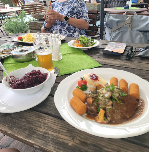 Zum Essen: Dieses Mal bestellt: 1x Wildbratenteller und 1x Wildgulasch Das Wildfleisch war sehr gut und auf dem „Punkt“. Der Rotkohl war sehr gut angemacht und gegart! Zu den Gerichten gab es u.a. Champignons (der Saison entsprechend mit Pfifferlingen). Die Portionen waren sehr gut. Auf Wunsch gibt es auch „kleine Portionen“.