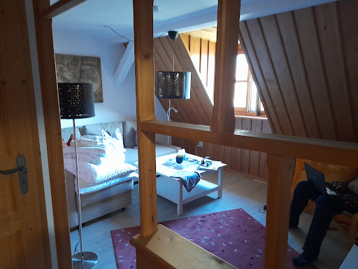 Read moreDie Pension befindet sich in einem hübschen, liebevoll gestaltetem Fachwerkhaus direkt neben der Kirche. Das gibt einem sofort ein Urlaubsgefühl. Gegenüber gibt es auch eine Pizzeria und 2 Supermärkte sind auch nicht weit entfernt. Die Ferienwohnung ist wunderschön und gemütlich eingerichtet, sehr geräumig und mit allem ausgestattet, was man für den Aufenthalt benötigt. Aus jedem Fenster hat man einen Ausblick in's Grüne, v.a. auf den romantischen Garten mit den netten Sitzecken. Leider hatten wir keine Gelegenheit, ein Frühstück zu bestellen, aber die Karte bietet eine reichhaltige Auswahl, die sogar Spezialitäten wie hausgemachtes Kimchi und Shakshuka beinhaltet. Die Besitzerin hat uns freundlich empfangen und gerne alle Fragen beantwortet. Als Tierhaarallergikerin war ich sehr von der Sauberkeit des Hauses, insbesonders der Ferienwohnung beeindruckt, da ich trotz 3 Hunden und einer Katze im Haus keinerlei Beschwerden hatte. Wir kommen bestimmt...