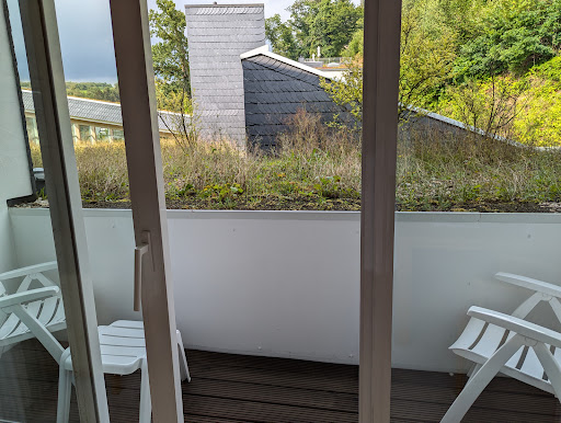 The balcony, charged at 50 Euro extra per night was tiny and had a view as shown in the picture on weeds and a rooftop. (photo) Early in the morning you could glimpse a bit of sun though...
