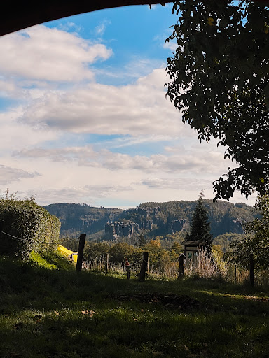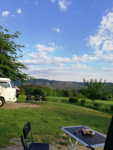 Read moreWenn wir Rezesionen schreiben, dann entweder weil es uns mehr als überzeugt hat oder weil es einfach unterste Kanone war. In diesem Fall können wir ein sehr großes Lob aussprechen. Begonnen hat es mit der Anfrage. Sinngemäß war die Antwort auf meine Frage nach einem freien Platz, "Wir sind zwar voll, aber evtl. findet sich noch ein Plätzchen auf der Zeltwiese. Bitte vor Anreise aber nochmal direkt klären". Gesagt getan. Wir können kommen und finden einen tollen Platz direkt auf der Zeltwiese mit einer herrlichen Aussicht. Der Inhaber meinte zwar der Platz ist nicht groß, aber für einen Defender sollte es reichen. Was soll ich sagen. Der Platz war für unsere Verhältnisse riiieeeesig :-) und grün. Bei Ankunft war keiner da. Kurz angerufen und uns wurde gesagt, das wir einfach auf unseren Platz fahren können und 4 Duschmarken schonmal bereit liegen. Manchmal sind es einfach die kleinen Dinge im Leben die zählen. In unserem Fall waren es die 4 Duschmarken. Für die Gäste auf der Zeltwiese gibt es einen Aufenthaltsraum mit Kühlschränken, Kochplatten und Abspülmöglichkeiten. Sehr schick, wenngleich wir nur zum Abwasch dort aufgeschlagen sind. Die Duschen/Toiletten sind sehr sehr sauber. Die Anmeldung bei André war sehr nett und freundlich. In der Anmeldung gibts auch nen kleinen Shop wo man alles findet, was notwendig ist. Sprich man verhungert und verdurstet nicht :-). Brötchenservice gibts auch und frische Gurken vom Bauern hier aus der Ecke gibt es auch. Man kann auch direkt von hier aus super Wanderungen unternehmen und muss nicht extra ins Auto steigen um zu einem Wanderparkplatz zu gelangen. Ca. 2,8km im nächsten Ort (Altendorf) gibt es einen Metzger (Kirpal) der aber nur Dienstag bis Donnerstag von 14-18 Uhr geöffnet hat. Ist direkt im Gasthaus "Heiterer Blick". Das Grillfleisch kann ich aber erst heute Abend bewerten da es noch im Kühlschrank liegt :-). Zurück zum Campingplatz. Brennholz wird kostenfrei zur Verfügung gestellt und eine Feuerstelle für ein gemeinsames Lagerfeuer gibt es auch. Die Aussicht ist super. Man schaut direkt auf die Sächsische Schweiz mit deren Felsformationen. Der Platz ist klein, aber genau das ist es, was wir suchen. Ruhe, Erholung und nette Campingplatzbetreiber. Was will man mehr. Sollten wir mal wieder in der Ecke sein, dann werden wir definitiv wieder nach einem Plätzchen fragen. Wer sicher gehen will, sollte unbedingt vorher reservieren. Vielen Dank nochmal für den netten Aufenthalt und...