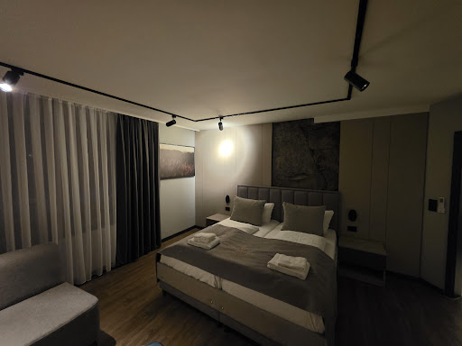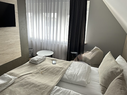Read moreEntsprechend der Hotelbeschreibung eigentlich 5 Sterne. Aber(!) ein paar Pünktchen dürfen der Erwähnung. Vorweg erstmal, der Service ist wirklich super. Die Zimmer sehr sauber, Bett und Badezimmer ohne Beanspruchung gut bis sehr gut. Leider liegt das Hotel an einer großen und für das Örtchen gut befahrenen Hauptstraße mit Kreuzung. Ein Blick aus dem Fenster ist nicht zu empfehlen. Aber dafür scheint die Schallisolierung gut zu sein. Fenster blieben nachts geschlossen, die Klimaanlage hat einen guten Job gemacht. Das Zimmer, Doppelzimmer mit 2 Doppelbetten, ließ wenig Platz zum bewegen im Raum. Aber auch das ist zu verschmerzen. Leider hielten sich aber wohl insbesondere andere, kinderreiche Familien, nicht davon abbringen im Zimmer über uns Tetris mit Möbelstücken zu spielen. Da scheint dann wohl leider die Trittschalldämmung, für den Pöbel über uns, als nicht ausreichend geeignet zu sein! Eine Beschwerde beim Chef am Morgen darauf verhallte leider nur mit einer Entschuldigung seinerseits! Ansonsten, alles weitere war wirklich gut bis sehr gut. Das Hotel als solches ist wohl erst seit 05/25 in Betrieb. Insoweit alles noch sehr neuwertig und modern (im Stiele eines südeuropäischen Styles), mir hat es jedenfalls gefallen. Im Zimmer noch jeweils zwei TV mit Smartfunktion. Das Frühstück, war für 14 Euro angemessen und gut. Recht Continental, sehr sauber und übersichtlich. Alles da was man so am Morgen braucht um sich zu stärken. Schön zu sehen, dass der Chef sehr akribisch mithilft das Frühstück zu gestalten. Parkplätze sind rar, aber ich durfte mein Krad problemlos und kostenfrei abstellen. Am, bzw. im Hotel befindet sich noch ein Friseur und ein Dönerladen. Recht betriebliche Verhältnisse sind also garantiert, waren aber nicht wirklich störend. So konnte man sich am Abend zumindest schnell und unkompliziert versorgen. Drumherum gibt es noch den einen oder anderen Discounter und eine kleine Fußgängerzone mit Geschäften und Restaurants. Alles sehr Fußläufig und gut ohne Motorisierung zu erreichen. Ein kleines Café und eine Bäckerei befinden sich auch im Nahbereich. Alles in allem ein gutes bis sehr gutes Hotel mit preislich angemessen und gut ausgestatteten Zimmern. Ich würde in Soltau dort immer wieder meinen...