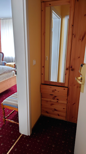 I stayed at Hotel Katharina Garni for two nights whilst helping my daughter prepare to move in to her dormitory at the university. Our room was on the lower level. Large enough for three people-a double and a twin and a small bathroom with a shower. The room was clean, but it had a mildew smell. When we arrived we were met at the reception desk by a young woman who was very professional and welcoming. She spoke excellent English and we had a very smooth check in process. Unfortunately, the next morning she was not in attendance. I believe it was her mother at the reception desk and she did not speak english and I do not speak german. My biggest shame in life is that I'm hopeless at learning new languages - I blame myself for any miscommunication when visiting another country. I go out of my way to smile, make eye contact and plead for forgiveness! This woman was having none of that! It carried over into the breakfast room, she just was not pleasant and welcoming as you would expect someone in her position to be. I just felt an air of impatience and hostility from her the entire stay. Breakfast was included in my reservation. It was a typical German breakfast, not the best-not the worst. As other reviews have noted, the hotel is situated at the top of a very steep hill and is not conducive to exploration on foot! The biggest negatives are the smell of mildew and the steep hill. As ! said in my title, there are better...