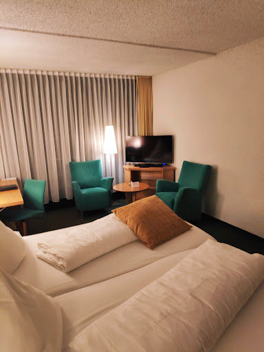 Read moreI stayed here on night in the room 426 (possibly a Junior Suite but I had booked a Superior room for 129 EUR incl, breakfast)||||What I liked||+ really friendly staff that cares about the customers. I have written this is some reviews before but I really felt in this hotel that they take customer service to the next level||+ Nice room with large sitting area||+ Large balcony||+ Separate bathroom (with separate shower and bath tub) and toilet... what a plus||+ Above average breakfast in a nice atmosphere||+ Large restaurant with several levels and a large outside sitting area||+ Free parking with enough space||+ Fast free WiFi||+ fast elevators||+ large surrounding park around the hotel||+ near the public transport system||+ there was some classic concert playing the evening I was there in the garden. Very nice.||||What I didn´t like||- the hotel shows its age at several places and the outside building is quite ugly.||- the view from my balcony was so unpleasant that I didn´t use it. Especially the large glass wall that is supposed to keep pigeons out of the balcony really is destroying any atmosphere||- the mattresses are really old and are so heavily used that its hard to find a good sleep||- no air conditioning||- the hotel seems to be frequently used by bus tours for retirees. Therefore you have loud crowds of laughing female (and male) that keep you awake for some while. Also the buses seem to have problems to park so are blocking the only street that is leading to the hotel completely.||||I recommend to stay here if you are...
