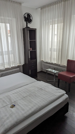 Read moreIt could be good for drivers - I picked it for the parking spots out the front and the easy access from main roads. It’s a short walk to the waterfront but then an additional kilometre along the waterfront to the zeppelin museum. The entrance is around the back and has a fixed sign saying that they’re not in and you have to call, but they’re probably in (wave through the window).||||My room (cheapest category) was sub-Japanese in size with a single bed wedged under the window. The bathroom was small but actually quite functional. Free wifi was excellent. The TV accepted USB drives. Breakfast was a pretty good selection - I'm sure I was told it was was €9 extra but they might have included it in my price. Smoke from the balcony rooms was a problem for me as was noise, with the internal stairs very creaky, guests going up and down the external stairs early in the morning, and the hotel being right under the flight path, with planes starting at 6am.||||If this were actually a cheap hotel, I might be impressed, but it was one of the more expensive hotels I stayed at in Germany. Maybe there’s something wrong with Friedrichshafen that makes it a very expensive town (I can’t think why, it’s a bit of a hole, but maybe it's a popular tourist trap), so check prices carefully against full-size alternatives...