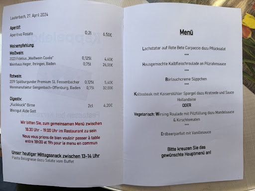 Read moreDer Käppelehof liegt landschaftlich sehr schön und ruhig nahe eines ausgedehnten Wandergebiets. Unser Zimmer (Wellnesssuite) war freundlich eingerichtet, verfügte über ein großes Duschbad mit Dampfsauna und gute Betten. Nachteilig ist, dass das Bad innenliegend ist und das Fenster zum Zimmer hin in der Nacht das Licht einfallen lässt. Vom Balkon ein schöner Blick über Wiesen und den Poolbereich. Uns fehlte ein Sonnenschirm, der auf keinem der Balkone vorhanden war. Die Balkonbeleuchtung lässt sich leider nicht individuell ausschalten, was für Frischluft liebende Menschen, die bei offenen Türen früh schlafen wollen unangenehm ist. Der gepflegte, kleine Wellnessbereich erstreckt sich über 2 Etagen und ist mit einem Aufzug verbunden. Um aus der Indoorsauna in den Indoorpool zu gelangen muss man sich leider wieder anziehen, da dies kein textilfreier Bereich mehr ist. Das Gleiche gilt für die Outdoorsauna und den Outdoorpool. Leider gibt es im Wellnessbereich keinen Getränkeservice. Die Beautyabteilung war während unseres Aufenthalts nur schwach frequentiert. Wir erhielten jedoch unsere Aromaölmassage wurde durch einen sehr freundlichen, älteren Masseur. Das Frühstücksbuffet ist ausreichend und abwechslungsreich. Für ein Hotel dieser Größe ist die Auswahl angemessen. Auf Anfrage ist es auch möglich auf der Terrasse zu frühstücken. Mittags wird von 13 bis 14 Uhr ein einfaches Gericht angeboten, dazu ein reduziertes Salatbuffet (siehe hierzu Anmerkung unten). Ab 15.00 Uhr gibt es eine Kuchenauswahl, beides ist im Preis inkludiert. Unpassend empfand ich den Hinweis, dass nur ein Stück Kuchen pro Person im Preis enthalten ist. Es wirkt einfach wenig gastfreundlich. Abends steht ein 5-Gänge-Menü mit 3 Hauptspeisen zur Auswahl. Beginnend mit einer kleinen Vorspeise, gefolgt von einer Auswahl am Salatbuffet, danach eine Suppe, den Hauptgang und ein Dessert. Die Speisen bewegen sich auf dem Niveau einer gutbürgerlichen Küche, wobei die Qualität leider nicht gleichbleibend war. Einzelne Gänge waren leider von minderer Qualität, so z.B. trockene Kroketten und ungeschälte salzlos gegarte Möhren als Beilage, ein Restesalat, der lieblos auf einem Teller angerichtet als Vorspeise gereicht wurde. Das Salatbuffet präsentierte jeden Tag mittags und abends eine unveränderte Auswahl der gleichen Salate und Dressings. Regionale Spezialitäten fehlten leider auf der Karte ganz. Von einem Hotel, das auf seiner Website mit Kulinarik wirbt, hätten wir deutlich mehr erwartet. Der Service war freundlich und professionell. Uns fehlte aber ein wenig das Gefühl das man es dem Gast zu schön wie möglich machen möchte. Vieles wurde nur auf Nachfrage geboten. So muss man z.B. für zusätzliche Handtücher (2 Handtücher pro Person sind Standard) zur Rezeption, die nicht immer besetzt ist. In der Sauna sucht man Handtücher leider vergebens. Oder man kann nur auf Nachfrage auf der Terrasse essen, bei schönem Wetter sollte das selbstverständlich sein. Das sind so die Feinheiten, die ein gutes Hotel von einem sehr guten Hotel unterscheidet. Das Preis-Leistungsverhältnis ist unseres Erachtens bei einer Normalbuchung (keine Sparangebote) nicht in Balance...