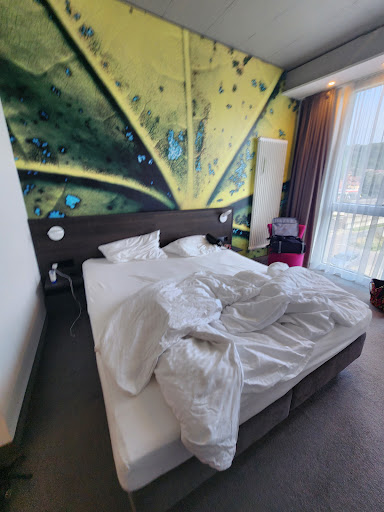 Read moreFünf Nächte in diesem empfehlenswerten modernen Hotel im idyllischen Städtchen Schwäbisch Hall. Wer hier übernachtet, wird es sicherlich nicht bereuen.||Das quaderförmige Betongebäude ist von außen keine Schönheit, jedoch nett am dahinplätschernden Flüsschen Kocher gelegen und über einen Fußgängersteg direkt mit dem an die Altstadt angrenzenden Einkaufszentrum Kocherquartier verbunden.||Wir hatten ein Zimmer der Kategorie „Comfort plus“ gebucht. Dieses erwies sich als großzügig, hell und absolut sauber. Insgesamt wirkte es nicht gar so „quietschebunt“ wie auf den Fotos im Internet, sondern vielmehr wirklich schick, wenn auch vielleicht ein klein wenig kühl und unpersönlich. Ausgesprochen bequemes Bett, viel Stauraum im Schrank, schöner Balkon zur Kocher hin. Unhygienischer Teppichboden in einem Hotelzimmer wirkt allerdings heute nicht mehr zeitgemäß.||Nicht riesiges, aber ausreichend großes Bad mit bodentiefer Dusche, die allerdings leider nur eine eher schwächliche Handbrause und keinen festen Regenduschkopf aufwies. Die versprochenen „flauschigen Handtücher“ waren nicht flauschig. Der Föhn hingegen super kraftvoll, nicht der in Hotels sonst oftmals anzutreffende nahezu nutzlose „Rohrkrepierer“. Schminkspiegel und Kosmetiktücher sind nicht vorhanden.||Solides, jedoch nicht überragendes Frühstücksbüffet mit frischen Bäckerbrötchen, Rührei, Wurst, Käse, verschiedenen lokalen Säften und großem Kaffee- und Teeangebot. Sehr gut gefiel uns der hohe Anteil an leckeren selbst hergestellten Speisen: Hausgemachte Marmeladen, verschiedenen Salate und Paprika-Feta-Aufstrich aus eigener Produktion, frisch zubereitetes Birchermüsli und Eierspeisen in witziger Muffin-Form.||Besonders hervorzuheben ist das Personal, das ausnahmslos sehr...