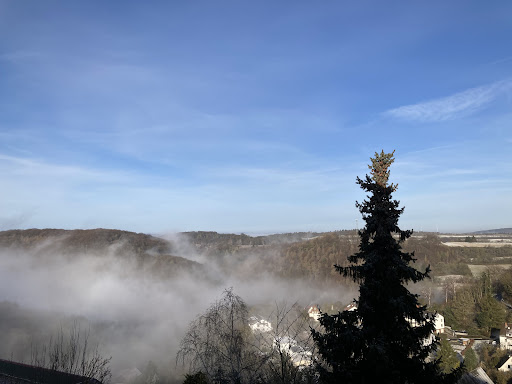 We did not stay in the actual hotel building but in a holiday cottage (large, about 140 sqm.) on the premises. The cottage consists of a large living rooms (stairs leading down!), an open kitchen with attached storage room, two bedrooms, each featuring a kingsize bed and ensuite bathroom (one with a shower only, one with shower and tub), a guest toilet and a long hallway with a built-in clothes rack. All in our group found the beds to be very comfortable. The furniture in the living room seemed fairly new and modern and the the ktichen was well-equipped with plenty of dishes, cutlery, pots etc. There was a dishwasher, a cooker and a microwave. The large balcony on the back of the house is accessible from both bedrooms and from the living room. There is some furniture on the balcony and it allows great views of the surrounding area. Everything was spotlessly clean, however it smelled strongly of mould when we entered the house. The open fire place in the living room (wood provided by the hotel) is a nice touch. There is no wifi in the cottage.||||The big drawback of the cottage is its location, which is about 100m down the hill from the hotel in the backyard of a huge, run-down apartment house. Therefore, if you want to make use of the hotel's spa facilities (or eat in the restaurant) it means packing your bag and trudging up the steep hill leading up to the hotel or - and I am not sure which one is worse - make use of the shortcut (staircase - I am not sure the elevator works, we did not trust it - through the uninhabited, run-down apartment house, which is quite scary. There is ample parking space near the cottage. Walking distance to Waldeck castle and air tram is about 500m.||The hotel itself has the atmosphere of a typical 1980-1990s house; furniture, wallpaper etc. are all a bit dated. What really put me off was the smell of smoke that hovered through the lobby, the hallway and the restaurant. Its source was a little bar near the reception, with a capacity of perhaps 20 seats which was completely crowded with double the number of smokers everytime I walked by. The door was left open all the time (otherwise the "inmates" probably would have died of suffocation) and the smoke was allowed to spread through the hotel, which was pretty disgusting. ||The restaurant comprised a large hall-like room where company groups or tour groups (bus tours!) were seated and a small area separated by a small dividing wall for individual guests. The corner for individual guests was nicely decorated, however all the noise from the group section could be overheard. Food and service were excellent. Staff was very friendly and attentive, both in the restaurant as wee as in the rest of the hotel.||There is a disco in the basement where a dance event or some kind of group entertainment was held when we walked by in the evening, I am not sure whether the noise can be heard inside the building, but it was quite loud in the street.||The spa is also somewhat outdated and could need a revamp. Facilities in the spa area consist of a swimming pool, a small sauna and a steam room, changing room and lockers. There are definitely not enough loungers when the hotel is fully booked. I think there were about 10 loungers by the swimming pool and four loungers in the rest area next to the saunas. Also, the loungers, though new, are not very comfortable. They are ok to lie on, however they are extremely low and it might be difficult for older people to get up from. The hotel has 60 rooms, thus in the afternoon, when people come back from excursions, the spa area gets terribly crowded. Massages and beauty treatments are also offered. I had a beauty treatment and a massage, I was happy with both.||There is a small supermarket up the road (150m), a post office and some restaurants nearby. Parking in the hotel's parking lot is tricky when fully booked. ||||All in all we had a pleasant stay, however be aware that the place...
