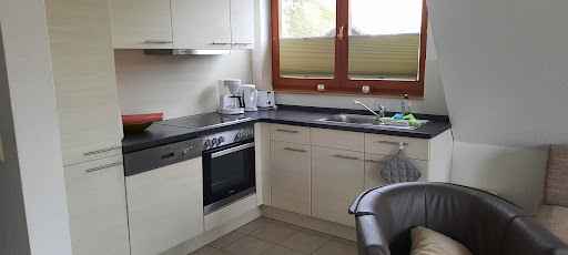 Read moreWir waren im Juli 1 Woche bei Hausmanns in der ehemaligen Schmiede, also in Wohnung Nr. 4. Auch bei uns war der Empfang durch den Sohn eher kühl und sehr formell, genau wie der Abschied. Die Lage ist sehr gut, zur Wohnung gibt es dann aber auch von uns noch einige Anmerkungen. Die schon erwähnte Treppe ist wirklich recht steil, zudem knarrt und knorzt sie ziemlich laut. Die Küchenzeile ist sehr überschaubar, war aber alles blitzeblank bei unserer Ankündigung. Die Essecke im unteren Bereich ist eigentlich nur für 3 Leute bequem, die vierte Person muss mehr oder weniger unter der Treppe sitzen.. I'm Kinderzimmer steht nur 1 richtiges Bett, für unsere zweite Tochter Stand eine etwas in die Jahre gekommene Schlafsofa zu Verfügung, für das Aufbauen mussten wir dann auch Hilfe in Anspruch nehmen.. Beim grossen Bett haben wir eigentlich nur noch den Vorschlag, mal ordentliche Matratzen anzuschaffen... Uns waren sie viel zu dünn und es war so definitiv kein grosser Schlafkomfort. Die WLAN Verbindung war etwas labil, es funktionierte nicht überall in der Wohnung. Das Bad war sauber, hier ist die Ablagefläche für 4 Personen etwas knapp bemessen. Auch wären noch 1 oder 2 Handtuchhalter mehr nicht schlecht. Garten und Grundstück waren gepflegt, unsere Mädels haben es sehr genossen, mit den kostenlos zur Verfügung gestellten Rädern abends nochmal durch den Ort zu fahren. Wir hatten eine schöne Woche, doch ich würde die Wohnung wirklich nur für 3...