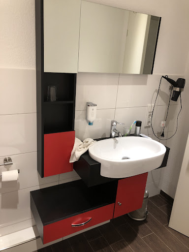 Read moreDas Zimmer Red Room sah auf den Bildern ganz schick aus. War allerdings recht veraltet und mit 2006 Ikea Mobiliar eingerichtet. Wenig bis kaum Deko. Gardinen gab es keine, dafür aber ein Rollo. Das Zimmer war insgesamt sauber, allerdings um 14:30 nicht fertig, obwohl der Check-in auf 14 Uhr vorab per Email bestätigt wurde. Die Spülung der Toilette war kaputt und lief. Zwei kleine Proben Duschgel und sonst nichts. Die Minibar war gefüllt, allerdings war der Kühlschrank so laut, dass ich ihn ausschalten musste. Hat aber auch von der Temperatur der Getränke keinen Unterschied gemacht. Der Topper war komplett durchgelegen, sodass ich mit Rückenschmerzen aus der Hölle aufgewacht bin. Die Bettwäsche war auch sehr zerwaschen und hatte bessere Tage gesehen. Das Frühstück war allerdings sehr lecker und sehr üppig und liebevoll angerichtet. Das Hotel war recht flexibel, ich brauchte spontan ein Reisebett. Das wurde gestellt. Allerdings brauchte ich es dann doch nicht mehr. Das Zimmermädchen hatte es bei meiner Ankunft nicht ganz aufgebaut bekommen. Allerdings auch nicht wieder eingepackt. Ich habe ihr dann geholfen das olle faltding irgendwie wieder klein zu machen.