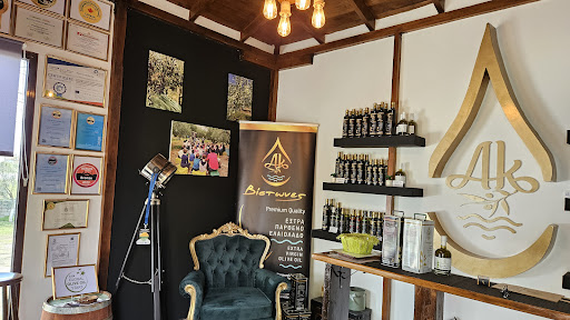 Nehir kenarında müthiş bir lokasyonda bulunuyor..yoldan geçerken şans eseri gördüm ve girdim..sertifikalı 2 tip zeytinyağı satılıyor..erken hasat extra virgin olanın kuvvetli bir aroması var..Dukkan sahibi Katherine tanıtımı güzel yapıyor..aynı zamanda burada ailecek butik bir otel işletiyorlar..doğal el yapımı sabun da...