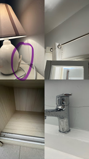 Το δωμάτιο ήταν παλιό, κάτι που δεν θα με ενοχλούσε αν ήταν καθαρό και λειτουργικό — όμως δεν ήταν. Υπήρχαν εμφανή σημάδια φθοράς και αμέλειας: – Το μπάνιο είχε κιτρινίλες και γενικά δεν ήταν καθαρό. – Το στρώμα ήταν πολύ παλιό και άβολο. – Τα κουρτινόξυλα έπεφταν, τα κρεμαστράκια στο μπαλκόνι ήταν χαλασμένα και τα πόμολα σκουριασμένα. – Οι πόρτες δεν έκλειναν σωστά, βίδες έλειπαν από το πόμολο που κλειδώνεις, με μεγάλα κενά από κάτω στην πόρτα και χωρίς ηχομόνωση. – Ζήτησα χλωρίνη για την τουαλέτα, γιατί ήταν βρώμικη. Τρίχες παντού και κουνούπια στους τοίχους σκοτωμένα.