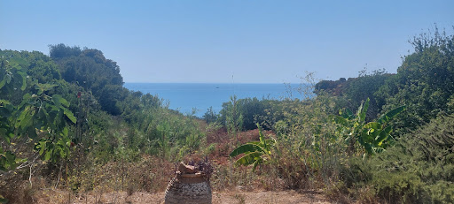 There is nothing but greenery and fields surrounding this place so a car is absolutely essential if you want to go anywhere. There is a downhill track to the beach below, the sea is a stunning turquoise blue here with a rocky pebble beach. We went nearly every day and only saw a couple of people.