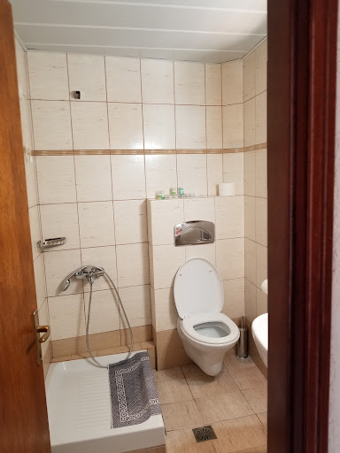 I stayed there for two days with a friend of mine. The room is located on a small hill but very near to the Gialiskari beach and all the bars(night life) of Varkouri.||The location of the hotel is quiet and you don't hear any noise from either the street of music from the bars.||You can park your car just below the hotel, but since the parking spots are limited, we often couldn't find a spot to park it.||The room was nothing fancy but it was ok for a two night staying. It had a fridge a small oven, air condition, a small flat tv and a porch which was connected to the other room. On the porch you could sit on the two chairs and eat something on the table that it was provided. The beds were ok, but don't expect the best mattress of the world. The owners were kind enough to provide us the first breakfast (marmalade, butter, four toasts and instant coffee (frappe). It was a very nice gesture (all the above were located the moment we entered the room, meaning that they didn't actually served breakfast).||Three bad things I found in the room were the following: First of all, one night some people just above our room find it amusing to move their beds, chairs and whatever else they could find at 3 o'clock in the morning. They woke me up from all the noise. Although this is not a problem of the hotel, I have to mention it since there is no supervision of the noise people can make.||Second, as you can see from the pictures, the pre-entrance to our room was a bit strange, and to my mind it resemblance the 80's greek style staircase which lead to the boiler. I felt a little claustrophobic and I have a feeling that these two rooms (our and the next) weren't suppose to be there.||Finally, the bathroom. Although hot water was not an issue, it was small and the door had a small problem (see the pictures), since the sink was bigger and they had to cut a small area of the door, in order to function properly. The window of the bathroom was facing the corridor of the other room, leaving you no privacy at all.||||The owners were very kind to us and I have to give them that. They do accept credit card although they are having some problems with their telephone provider (connecting to the bank). Overall, I wasn't thrilled about this hotel and for €50 a night, maybe you could find another...