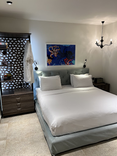 The room (501) is very modern and comfortable, with every amenity we could ever need, and then some. It features an open floor plan where the bedroom is not separated from the bathroom/shower, and it works very well at making the room feel spacious and modern. There are plenty of light switches and lights to set the mood lighting just the way you want. The mini fridge even has a window for a door, and an interior light. Every room features a Marshall Amp Bluetooth speaker, so you can enjoy some tunes from your own playlist. The private balcony has a very nice view, featuring the Acropolis above, and Plaka below and to the sides. There are chairs and a table to share the view. The WiFi was stable, and more than acceptably quick. The bathroom amenities are nice, but I don't recommend using the razor for your head (if you're bald, like me) as it seems more aimed at legs. The Burrattino restaurant on the ground floor provides excellent breakfasts (included in the price of the room), with perfectly poached eggs in the eggs benedict. The ingredients are fresh, and high quality. Literally, anything we needed, or had a question about, they were more than happy to assist us with. The husband and wife team that own/operate the hotel are wonderful people that are definitely in the right business. We will be staying at the Athens Ivy Suites the next time we visit Athens for sure. It's that good. Thank you for adding an immensely positive end to our...