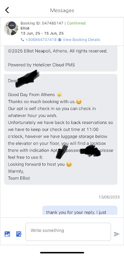 We stayed with Elliot for 4 days and 3 nights at the end of June and it was a WONDERFUL experience. First off, we arrived in Athens from a cruise ship early in the morning but the check-in time for Elliot was not until 3PM. We were worried that we would have to lug around a considerable amount of luggage for the morning so we reached out to see if there were any options (I.e. early check-in, luggage storage etc). The hotel was very responsive to our request and although they could not do early check-in, they did suggest that we could drop off our luggage at their sister hotel, The Modernist, and someone would tag and watch it for us as the Elliot does not have a concierge. This was a very good option for us and our experience with the staff at The Modernist was excellent (see my review for that hotel as well!!). Once check-in time arrived, it was smooth sailing as we were provided with all the passcodes to enter the building and the unit. The elevator took some getting used to but once we figured that out it was a pretty cool experience as well. The unit itself was well kept and spacious. All amenities were working as expected and the free cappuccino pods were a nice touch. Location of the hotel was excellent with many options around for food, drinks, coffee and most importantly, gelato!! There is also a supermarket nearby so we were able to purchase food and cook a meal or two ourselves, although the eating options nearby are just too good to miss!! This is a self-service hotel so there is no room service, room cleaning or concierge. This was preferable for us but for some this might be a drawback. Lastly, the area the hotel was located in was relatively quiet at night.There is a police station just a few streets away and we suspect that this is why it's so quiet as the officers seem to always be outside the police station, perhaps acting as a visual deterrent for anyone who might be up to no good!! This was a big plus for us as we are a family with young children who prefer quiet when they sleep. We would definitely stay at the Elliot again if we were to go to Greece. Honestly, nothing bad to say about this place, even the price was very reasonable. Thanks again for your...