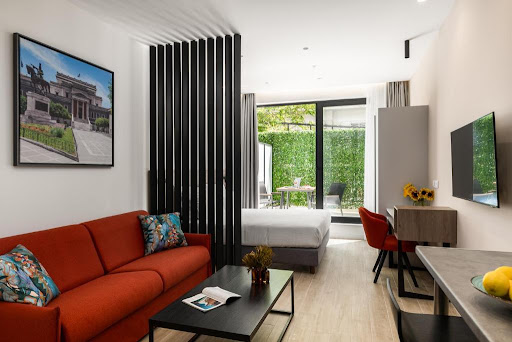 Read moreAmazing place to stay, highly recommend. Not really a hotel, more a serviced apartment. Check-in was easy, code for front door was sent in advance. The area is not exactly touristy to put it politely and it’s a bit “run down” but it’s only a short walk to the very centre where you can find all the main places to visit. Walking in the area during the day or night is not that pleasant, there are homeless people, drug addicts, etc so keep that in mind. Metro and bus are within easy reach. Reception staff are friendly but not always there, you can reach them by email or phone and they are responsive. Seems quite new or recently refurbished, decor and design is modern and good quality. Many cameras around the building, reassuring but also questioning why needed. Housekeepers are wonderful, only bad thing is they smoke in their “office” and the smell spreads throughout the building via the atrium. Gym is great. Laundry is great, and they even give you detergent (kitchen drawer). Rooms are cleaned everyday, sometimes light and sometimes full. New towels everyday and bedding every second day. Bed is comfortable and sheets are soft, there is a thicker blanket in the wardrobe if needed. Iron and iron board (small) in the room. I borrowed a clothes drier from the laundry to dry my clothes in my room. Kitchen is sufficiently equipped for breakfast or light meal, better to eat out. Coffee machine is great and they give you more capsules each day. Never used the TV or dishwasher. WiFi is fast. Shower is wonderful, always hot water. Sometimes you can hear others in adjacent rooms, the soundproofing isn’t that good, especially if you have a door connecting to another room. Sadly some people don’t observe the Greek quiet hours. Some days I could smell people’s cooking, presumably through the ventilation system. Air conditioning and heating worked well. Window can be opened but it’s very noisy, the streets are always busy and you hear the vehicles and people all day and all night. The roof terrace could be better if there was music maybe, or sun beds, electric sockets etc, seems such a missed opportunity. The views to the Acropolis and Lycabettus Hill/ church are incredible especially at night. Supermarket, coffee shops, barbers, pharmacy,...