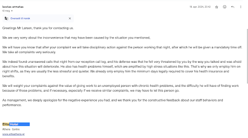 The front desk is manned 24/7 with an equally friendly staff. On the second shift you will find Laertis or George, both speak English and are knowledgeable regarding local historical sites and eating establishments. Laertis is a font of Greek and Roman history and we had many interesting conversations.