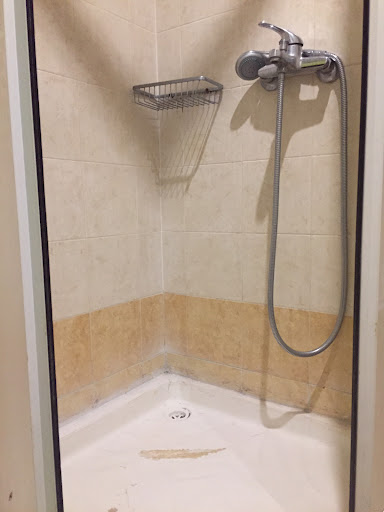 When we went into the shower area you had two showers, a bigger and a smaller one, my girlfriend took the bigger shower and I took the smaller shower. While we were showering we heard someone enter the toilet to the left of the showers. When we went back to the room after showering my girlfriend told me that she felt like someone was watching her.