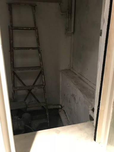 I dressed myself and went back to the showers to see if something was fishy, I noticed some glass sunblinds(?) or ventilation or something in the big shower area. Then I went to the toilet left of the showers, this toilet has a big double window in it, when you open the window you see a little room with a generator of some sort and a ladder. As I looked around I noticed the sunblinds/ventilation is connected to this room and you could look through it into the shower.