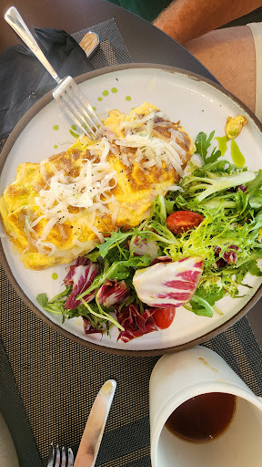 I booked through the website so we got breakfast with our room at the hotel cafe. It's an odd situation where you order a main dish and then have access to a buffet of bread and cereal. We ate there three mornings. The first day, the cafe was so packed that they turned away several guests, saying just "try again later." And the cook yelled at a waitress until she cried in the open kitchen format. Each day, it took about 45-60 minutes to receive an omelette after ordering (which took 10-15 minutes to begin with), even on the day we were the only ones there. On two of the days, the manager set up all her stuff on the bar with loud laptop notifications, and then popped in and out of service in a way that obviously disrupted and confused the waiters. I would have preferred a regular hotel buffet like other Athens hotels offer so that it didn't take 90 minutes for breakfast.