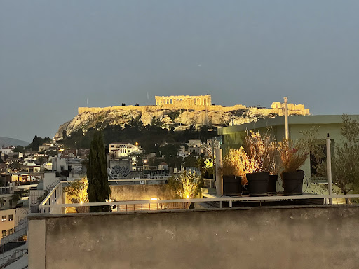 Read moreI stayed here for 4 nights and I was amazed by the incredible location and attentiveness from the hotel staff. The hotel is located in the heart of Athens and only a 15-20 mins walk from the Acropolis and main sites. It is on a busy strip of bars and restaurants and there is plenty going. The Acropolis can be seen from the roof top balcony or balcony depending on which way your balcony is facing. We had a fantastic time here the staff helped us with food recommendations and even called some restaurants to make reservations on our behalf. The rooms were spacious and kept very clean. We had a suite (2 bedrooms and one bathroom). Both bedrooms were lovely ,the jacuzzi was great and the tea and coffee machine and record player was a lovely touch. I cannot fault our stay the only thing I would be cautious of is that the floors are marble so in the bathroom it can get very slippery which was fine for us as we laid out towels but could be problematic for a young family. Also although it was not rowdy along the strip you can still hear some music until 1am (might be later in peak) again this did not bother us. Special thanks to Martha and the other young girl who helped us out over our stay sorry we did not...