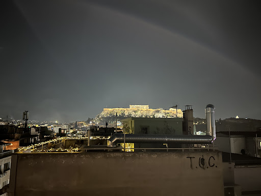Read moreCharming Pame House suited us perfectly and was an excellent value. ||Their location is steps away from pretty much everything we needed. The Psyrri neighborhood is a wonderful mix of real life and entertainment/amenities. Walking to the mini market for snacks, we passed by old workshops, tavernas, cafes, contemporary boutiques, pharmacies, and a painting supply store. Great for getting the vibe of the city.||The room was described as "minimalist", but we found it quite comfortable and well-equipped: compact but functional bathroom & shower; ample space for two adults; even a kitchenette with a sink, mini fridge for leftovers, a bit of counter space, and a Nespresso. Plus the most adorable little cups and saucers to go with it! ||The double room had a teensy balcony, with a pair of chairs and a table just big enough for our espressos and phones, overlooking an equally tiny courtyard. There are bigger rooms as well, but the basic one was anything but basic in our experience. ||The front desk is staffed 24/7 with pleasant and helpful people.||The impressively tiny elevator didn't fit the two of us plus our luggage at the same time. In a way, though, it was less of an inconvenience and more of a funny quirk.||There is also a covered rooftop terrace with beautiful views of the city and the Acropolis. It had plenty of space and comfortable seating.||Breakfast is included but not on site; it was at a different boutique hotel just around the corner. ||The only drawbacks I can think of are in common with most hotels I've stayed in lately. Hotels simply don't seem to rotate their WiFi passcodes as often as I think they should. Of course, neither do my favorite coffee houses at home.||We loved our Pame House experience and can't...