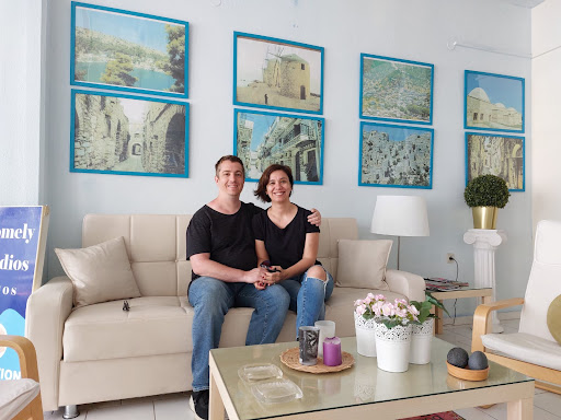 Read moreLovely decorated rooms with comfortable beds, kitchenette and dining area. What you see in the photos is what you get. Upstairs rooms have a sea view with Turkey in the distance.||This is a family run hotel and the family that runs it is friendly and helpful. Always happy to have little chat, assist you with car or bike rentals, and also offer plenty of tips on where to go and what to do on the island.||||Be aware that the location is quite out of town along a busy road, so a car would be handy, however there is a bus stop just nearby; otherwise a taxi will set you back between 4-6 Euros (depending on the time and luggage). ||At the front of the complex you will find a fruit and veggie shop and a corner store to buy essentials for breakfast, larger supermarkets are about 10-15 minutes walk away.||No immediate restaurants nearby.||As for the beach nearby, Agias Paraskevi is a small pebbled beach good for a quick swim but I would not spend a full day here, there are much nicer beaches...