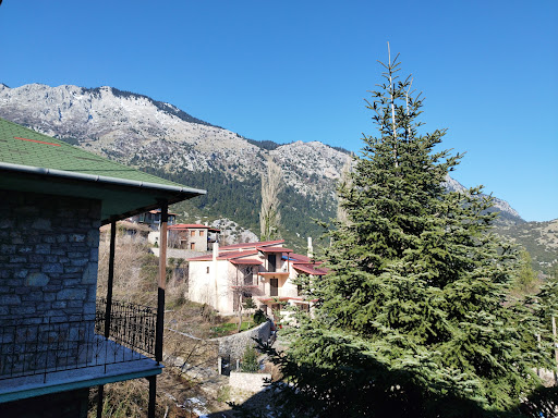 Alexandra Goumas's "xenonas" or guesthouse is a terrific find. It's traditionally stone built in style and relatively simple but the the fridge and wifi were very welcome. It has a stunning location with fabulous views over the mountains from the balconies and would be even better higher than the first floor where I was. Alternatively you could sit out on the lovely big terrace surrounded by the well tended plants.||||Alexandra herself is a wonderful woman, so welcoming when I arrived after a flight from Manchester and driving from Athens airport. She went out of her way even though I was the only guest midweek, (busier at weekends in Spring). She was great when we had a mix-up over her not taking credit cards and I paid her cash for two nights when I returned the following week on my way back from Epirus. Thanks again, Alexandra!||||The village is popular in the summer for walking and winter for nearby winter sports. The guesthouse has a cosy sitting area around a fire downstairs for the after-ski and breakfast is served adjoining and from a huge table-full of goodies in a sort of kitchen area - even for one!||||The Alexandra is situated just off the extremely attractive square to the right down a narrow passage between the buildings. You might find a parking space by the passage but I was never sure if they "belonged" to locals, though I'm sure there would be no problems if you were dropping off bags, which would be sensible. You park about 50 metres before the square and after the hairpin into the village after passing the Bear taverna on the right and the a couple of large Greek bins on the left. There's a opening to the right across what appears to be a narrow bridge with no sides. The car park is huge and shows how popular the village becomes at other times of year. You will see the terrace overlooking the car park and some rather steep stone steps up. Otherwise there is a concrete road up to the Alexandra not realistically...